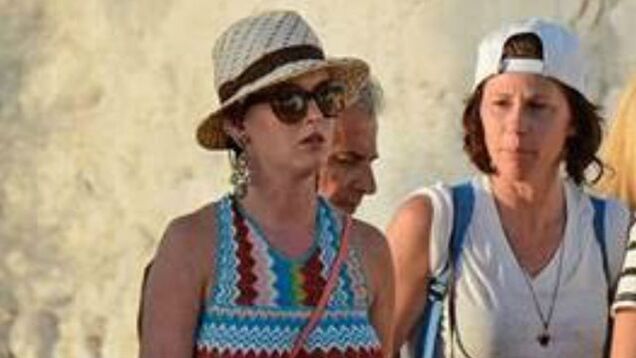 Katy Perry is enjoying her summer vacation in Mykonos, Greece, by giving us her best rich ‘70s suburban mom impression in a PF 2015 Missoni jumper. Not only does she have the slightly Fedora’d headgear, practical brown ballet flats, and oversized glasses down pat, she’s also wearing the expression of an exasperated, over-it rich-mom who really just wants a goddamn glass of white wine, already. Go ahead, Katy Perry. Get one of your kids to rub your feet, while you’re at it.