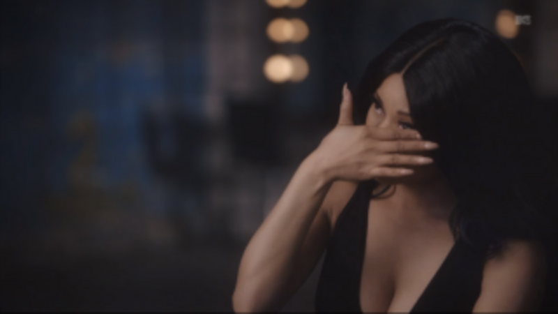 Another tearful moment takes place in the car as she's on the way to visit her friends and family in her (and my!) hometown of Jamaica, Queens. Frustrated with her busy schedule, she mentions only seeing relatives four or five times a year: "What is this all for if I'm not with the people who I care about the most?" If she could completely forego all press, she would. She'll probably get to a point (a la Beyoncé) where interviews will be unnecessary but not yet. Later, after a few scenes of her playing cards with her best friend's family and visiting her old nail shop, she cries again while remembering her abortion, which she raps about on "All Things Go," a song I prematurely dismissed.
