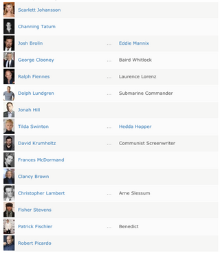 [Hail, Caesar! is] an all-star comedy set during the latter years of Hollywood’s Golden Age. Starring Josh Brolin, George Clooney, Ralph Fiennes, Tilda Swinton, Channing Tatum, Scarlett Johansson, Jonah Hill and Frances McDormand, Hail, Caesar! follows a single day in the life of a studio fixer who is presented with plenty of problems to fix.