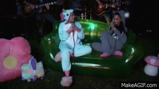 Y: Miley Cyrus and Ariana Grande—both dressed as babies—performed a whispery cover of Crowded House’s “Don’t Dream It’s Over” for Miley’s Happy Hippie foundation while wearing onesies. Miley sufficiently handles the deeper tones, while the tiny baby covers the high notes. It’s something easy to sway or kick to (see gif). [Billboard]